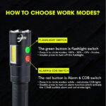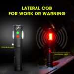 AULITE safety alarm flashlight can let you grab attention instantly during emergencies. The side COB provides white or red light for work or warning purposes.
